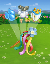 Build a Maypole on Build farm! Barbara needs your help setting up a Maypole! Collect enough Ribbon Wands to win a baby Red Spotted Shorthorn Mini Cow!
